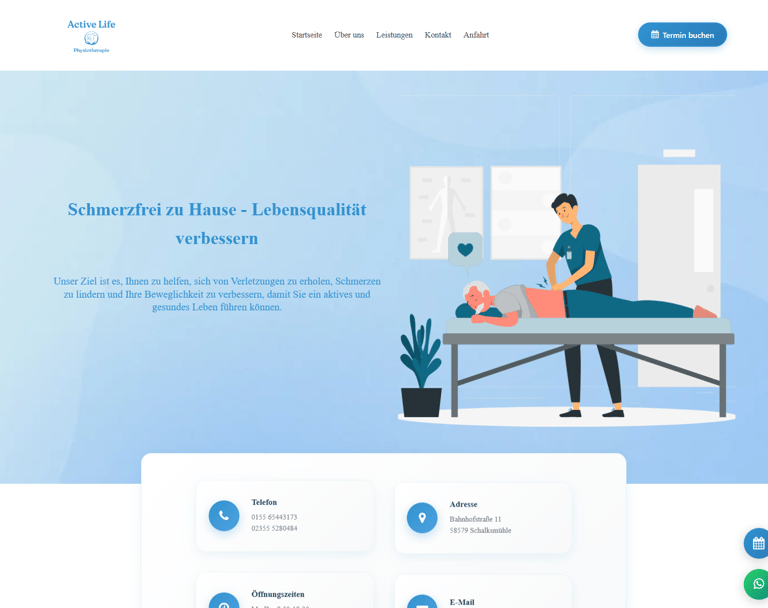 Wir haben fĂŒr Active Life eine responsive Praxiswebsite gestaltet, die Vertrauen schafft, Leistungen klar kommuniziert und direkt zur Terminbuchung fĂŒhrt.
