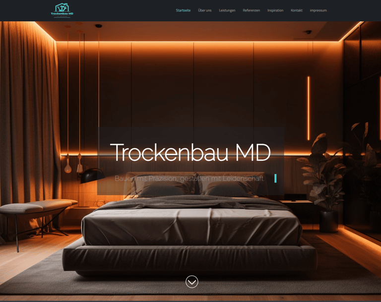 FĂŒr Trockenbau MD entwickelten wir einen neuen Markenauftritt mit klarer Struktur, starkem Design und ĂŒberzeugender PrĂ€sentation der Leistungen und Projekte.